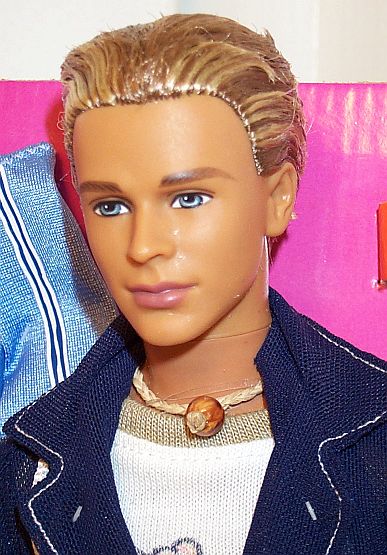 The voting is over for you to choose who Cali Girl™ Barbie® will date at Barbie.com. Five different choices were available: Life partner Ken®, who's portrayed as "sweet and fun, loves to surf", Steven™ "Super easygoing, into nature" or newcomers Blaine™ who is "So totally cute, great at sports" or Diego™, "Terrific swimmer, digs new adventures". All four guys appear in the "Cali Girlzine"! It's no surprise that Blaine™ doll won the popular vote at Barbie.com, and will now fill Ken® doll's shoes as Barbie® doll's new "boyfriend", with Mattel promising "they're gonna have the raddest times together!" There was another choice as well...having Cali Barbie® "stay single". All of the voting choices were neck-to-neck, with over a million votes recorded. The vote, like the Cali Girl™ PR campaign follows a carefully crafted script that teeters on making a big splash or belly flopping. Mattel has now started a advertising campaign on television featuring the Cali Girl™ dolls. Like simmering pots, Ken® collectors have been sitting on the stove wondering where this campaign of terror will lead, and after viewing the brief commercial, at least in my case, the pot has finally boiled over. Time will tell if this type of advertising will play well with the core market, which is really what matters most to Mattel. We already know Cali Guy™ Blaine® likes a dare...after all his fave saying is "Dare me?" Will he dare to compare? Cali Guy™ Blaine® Moving to Southern California has turned out to be surprisingly awesome. The people are totally cool and laid back and it is a good fit for my extreme sport lifestyle. I can hit the waves at sunrise, the rails at noon and get in some dirt biking or rock climbing before sundown. It's the ultimate! Today was no exception. Jumped into my 4x4 this morning and hit the waves with my surfing buddies at sunrise. We caught some pretty radical rides. At one point I looked back to shore and caught my sister with some friends heading into the surf. I couldn't take my eyes off the blonde. It's not like me to hang around my baby sister and her friends, but something about her was different. I mad a note to self to casually meet up with them later. I spotted them at the boardwalk cafe drinking smoothies. She was definitely a babe! My sister gave me a strange look as I headed toward the table with my friends. We hung out for a couple minutes, long enough for me to learn her name. I think I might have to spend more time with my sister. As I jumped back into my 4x4 and headed up the coast for my home, my mind kept drifting back to those beautiful blue eyes. Cali Guy™. A state of cool. I found Blaine at K's Merchandise for $14.97, well worth the price for the extra clothing and accessories. The Ken 2001 head mold used for Blaine. This head mold was last used on the following Ken dolls: Tango Barbie & Ken Gift Set, James Bond 007 Barbie & Ken Gift Set, Jude Deveraux "The Raider" Barbie® & Ken® Gift Set, The Waltz Barbie® & Ken® Gift Set, Lord of the Rings: The Return of the King Gift Set (Barbie® and Ken® as Arwen and Aragorn). But their is one slight difference. The head mold has been slightly enlarged, which has set off a firestorm with collectors. All of the dolls in the Cali Girl™ line (with perhaps the exception of Summer™ who may use a brand new head mold) use existing head molds, not new ones. They still have the correct earlier dates/markings on the backs of their heads, but they are obviously larger. Could existing molds been enlarged? Larger heads in general seems to be a trend with Mattel. From My Scene Fashion Dolls (which are much larger), the Kelly® brand line (which are/were disproportionate), the relatively new Stacie™ line (larger again), and now, the general play line dolls. Take note that the The Barbie® as The Princess and the Pauper dolls will also have slightly enlarged heads as well, including Ken® as King Dominick™ and Julian™ the Tutor And, at the time of this writing, there is gossip that perhaps some dolls in the Barbie® Collector™ line may also feature the enlarged heads. This is purely speculative. |